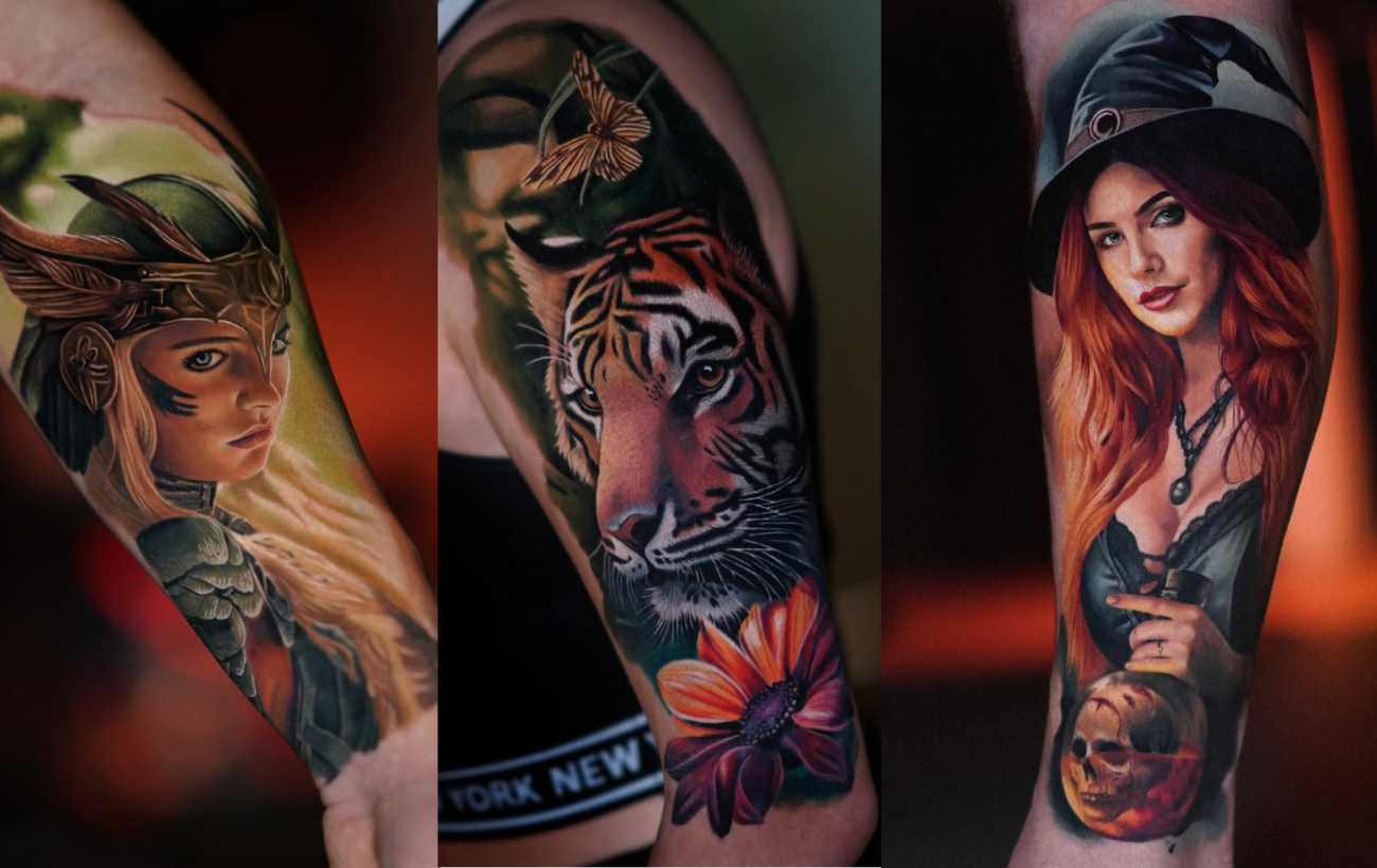 - Kolorowe tatuaże realistyczne – intensywne, nasycone kolory, bogactwo odcieni;
