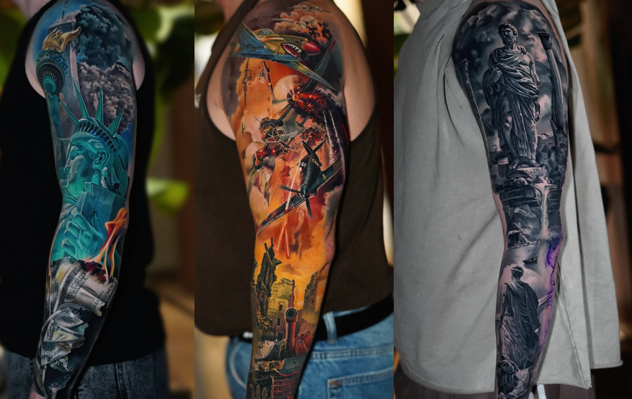 Tatuaż może być częścią większej kompozycji o głębszym znaczeniu, przedstawiać scenę z filmu lub historii.